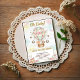 • A charming watercolor design featuring a fox, bunny, and bear riding in a hot air balloon adorned with pink roses and mint greenery, framed by a rustic rope border. This sweet set is perfect for a bohemian or woodland-themed baby shower.