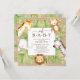 Adorable design featuring the sweetest giraffe, monkey, zebra, elephant & lion with a leafy jungle leaf frame set on a rustic tan burlap background. Visit our shop to view our entire Oh Baby Safari collection