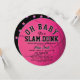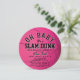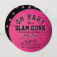 This classic "Oh baby, It's a slam dunk" girl's baby shower circle invitation features a pink basketball with bold lettering. The reverse side features a black background with pink star patterns. Personalize it for your needs. You can find matching products at my store.