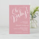 Stylish Oh Baby! girl baby shower pink invitations feature your party details in chic white lettering on the front and on the back, registry QR Code, diaper raffle and books for baby details. Available in more colours and MATCHING items in our collection.