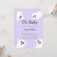 Oh Baby Purple Spooky Ghost Halloween Fall Baby Shower Invitation, feature design with cute little ghost in pastel purple and white colour theme. Funny and cute Halloween baby shower invitations for baby expected in Fall, Autumn.