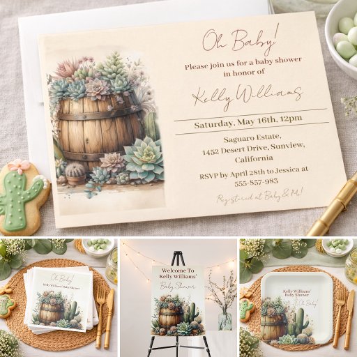 Oh Baby! Rustic Succulents & Cacti Baby Shower Invitation