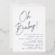 Simple baby shower invitations featuring "Oh Baby!" displayed in a bold silver foil script with a white background. Personalise the minimalist baby shower invitations with the mother's name and shower details. The silver foil baby shower invitations are perfect for gender-neutral baby showers!
