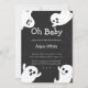 Black & White Oh Baby Spooky Ghost Halloween Fall Baby Shower Invitation, feature design with cute little ghost and spider web in black and white colour theme. Funny and cute Halloween baby shower invitations for baby expected in Fall, Autumn.