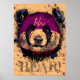 funny graphic and drawn design of a cool panda in black, burgundy and golden colours with "OH BEAR" funny quote Poster.