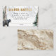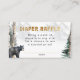 Encourage guests to bring a pack of diapers with this matching adventure-themed raffle card. Designed with a black bear, birch trees, and soft mountain watercolor art over a subtle map texture, it perfectly coordinates with the invitation and other items in the collection. Personalise the name line and create a cohesive, nature-inspired baby shower experience.