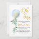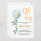 Oh Boy Baby Blue Balloon Eucalyptus baby shower Invitation