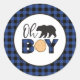 Oh Boy Bear blue Buffalo Plaid Baby Shower Classic Round Sticker