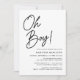 Oh Boy Black Script Minimalist Baby Shower Invitation