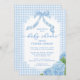 Oh Boy Blue Gingham Plaid Hydrangea Baby Shower Invitation