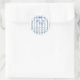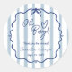 Cute and modern "Oh Boy" baby shower stickers featuring dusty blue and white stripes, a hand drawn wavy frame, and a blue ribbon. Simple yet whimsical round party plates, perfect for a mum-to-be who wants an elegant shower without compromising the sweet and fun element of her joyous celebration.