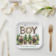 Oh Boy: Forest Wood Typography Bears Baby Shower Paper Plate