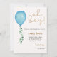 Oh boy modern eucalyptus blue balloons baby shower invitation
