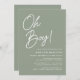 Oh Boy Script Sage Green Minimalist Baby Shower Invitation