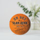 This classic "Oh boy, It's a slam dunk" boy's baby shower circle invitation features a basketball with bold lettering. The reverse side features a black background with faux gold star patterns. Personalize it for your needs. You can find matching products at my store.