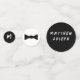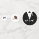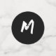 Design on large confetti features the look of a tuxedo as background to the words, "Oh Boy!" Text is customisable and may be replaced with a name or other wording. Reverse is black and displays name for baby in white. Medium sized confetti design features image of a black bowtie against white background. Opposite side bears image of burgundy-coloured boutonniere. Design on small confetti features black background to monogram for Babyin white lettering on one side, colours reversed on opposite side. Designed to coordinate with the "Oh Boy, It's a Boy!" Baby Shower collection.