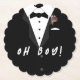 Design features the look of a tuxedo as background to the words, "Oh Boy!" Text is customisable and may be replaced with a name or other wording. Designed to coordinate with the "Oh Boy, It's a Boy!" Baby Shower collection.