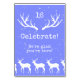 Table card for your holiday party featuring a deer design and purple background. Customisable with table number and greeting. Matches other items in the set.