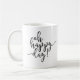 A great motivational mug with the phrase "oh happy day" in black hand lettered style script font.