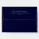 These beautiful Christmas holiday envelopes feature a deep blue night sky background with many stars on the inside of the envelope. Your pre-printed return address appears on the back flap, and the outer envelope is a rich, midnight blue colour.