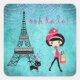 Oh La La Paris Girl and Cat With Eiffel Tower Square Sticker