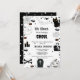 Oh sheet, we've got a ghoul! - You can celebrate the parents-to-be in style with this Halloween-themed baby shower invitation! This black and white design features a frightening scene around every corner.