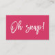 Modern and unique business cards for photographers or photography businesses feature a bold, chic magenta, white and black colour palette. White front displays "oh snap!" in white handwritten style brush lettered typography on a vibrant fuchsia pink background, with your contact information on the reverse side in modern black lettering on white.