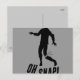 A zombie with his left leg snapping off at the knee while trying to take a step. Below the zombie is the phrase "Oh Snap!" The background colour can be changed when "customising" this product. When customising click on the word "edit" then click on "background" then choose colour.