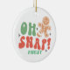 Oh snap gingerbread man retro funny Christmas personalised ceramic ornament