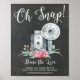Oh Snap Hashtag Wedding Sign featuring a modern font with a vintage grey camera set on a black chalkboard. Easy to change the size & customise with your information.
