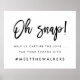 Our chic and modern poster shares your wedding hashtag with guests in gorgeous style! Black and white design features "Oh snap!" in handwritten style typography with brief instructions beneath. Personalise with your wedding hashtag at the bottom.
