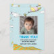A heartfelt thank you for the places they went, and for a birthday party so wonderfully spent! This whimsical card captures the spirit of adventure with a charming design inspired by the classic Dr. Seuss book, "Oh, the Places You'll Go!" It's the perfect way to share gratitude for all the wonderful gifts and love received, as your little one embarks on their next great journey. With space to add a treasured photo, it's a sweet memento of a truly special day.