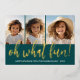 FRONT - The gold foil greeting - oh what fun! - is on top of 3 photos. The family greeting is on the bottom.