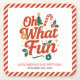 Christmas themed birthday "Oh What Fun" featuring a bold scalloped border, candy canes, holly, ornaments, and vintage holiday charm. Perfect for Christmas birthday parties, holiday birthday gatherings, cookie swaps, or festive events this winter. Editable text and fully customisable.
