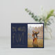 A fun holiday photo postcard with "oh what fun" in large bold handwritten style font in real gold foil on a navy blue background and your favourite portrait photo.