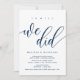 Beautiful Modern Simple Navy Blue Calligraphy, Wedding Elopement Announcement, Invitation card (Oh Yes, We Did). This is perfect for your wedding reception and post-wedding celebration party. Add your details in matching font / lettering.