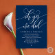 Elegantly announce your happily ever after with our modern navy blue theme wedding elopement celebration invitation card, "Oh yes we did". Tailored for couples continuing their love story, this invitation strikes a perfect balance of sophistication and charm, setting the scene for an unforgettable event. Featuring a modern contemporary script design, it adds a touch of timeless grace to your special day. Designed by the talented TeeshaDerrick, this invitation is a stylish expression of your enduring love.
