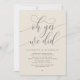 Elegantly announce your happily ever after with our modern cream grey theme wedding elopement celebration invitation card, "Oh yes we did". Tailored for couples continuing their love story, this invitation strikes a perfect balance of sophistication and charm, setting the scene for an unforgettable event. Featuring a modern contemporary script design, it adds a touch of timeless grace to your special day. Designed by the talented TeeshaDerrick, this invitation is a stylish expression of your enduring love.