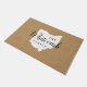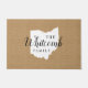 Modern farmhouse personalised doormat with your family name inside your state map. Faux burlap canvas texture background. Click Customise It to add your own text and images and create a unique one of a kind design!