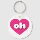 This keychain features a vibrant hot pink heart containing the bold, white, rounded lower case letters oh, a playful abbreviation for Ohio, the buckeye state.