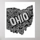 Ohio text over a music note filled image of the state of Ohio is a unique gift illustration for Ohioans that love music.