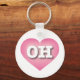This keychain features a calm, cool, and collected pink heart with a white-washed centre containing the bold white upper case letters OH, the official abbreviation for Ohio, the buckeye state.