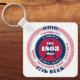 The Ohio State Keychain has a circular typography design with red, white, and blue colours on a white background. The text includes the state's name, capital, state abbreviation, resident's name, region, time zone, geographic coordinates, the year of its statehood, and the country - The United States of America. Unique patriotic gift idea.
