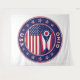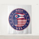 Badge of Ohio with flag of Ohio and flag of USA colours, rounded shape.