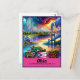 Embark on a mesmerising journey through Ohio with our 'Ohio's Wonders' postcard. This extraordinary piece showcases the American bullfrog, Ohio's state frog, leaping across a landscape that blends urban allure with natural beauty. The Ohio state flag waves elegantly, symbolising pride and heritage. Immerse yourself in the thrilling world of Cedar Point, the serene trails of Cuyahoga Valley National Park, and the architectural marvel of the Cincinnati Suspension Bridge. Each landmark, carefully depicted in this surreal illustration, echoes Ohio's state motto, representing the vibrant and dynamic spirit of the Buckeye State.