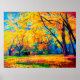 oil painting on canvas. Yellow trees. Modern art. Poster