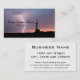 A beautiful, customisable business card with the silhouette of an oil drilling rig against a lightning bolt at sunrise in a purple sky.