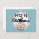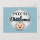 This funny postcard features a cute white baby face that says "Made In Oklahoma" on a blue background. Perfect for new baby announcements or just for fun.