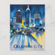 A captivating illustration of the Oklahoma City skyline at night. The image showcases the city's iconic buildings illuminated against a starry sky, with the reflection of the lights shimmering on the calm waters below. The design evokes a sense of tranquillity and urban beauty.