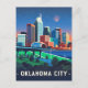 Oklahoma City Night Watercolor Postcard